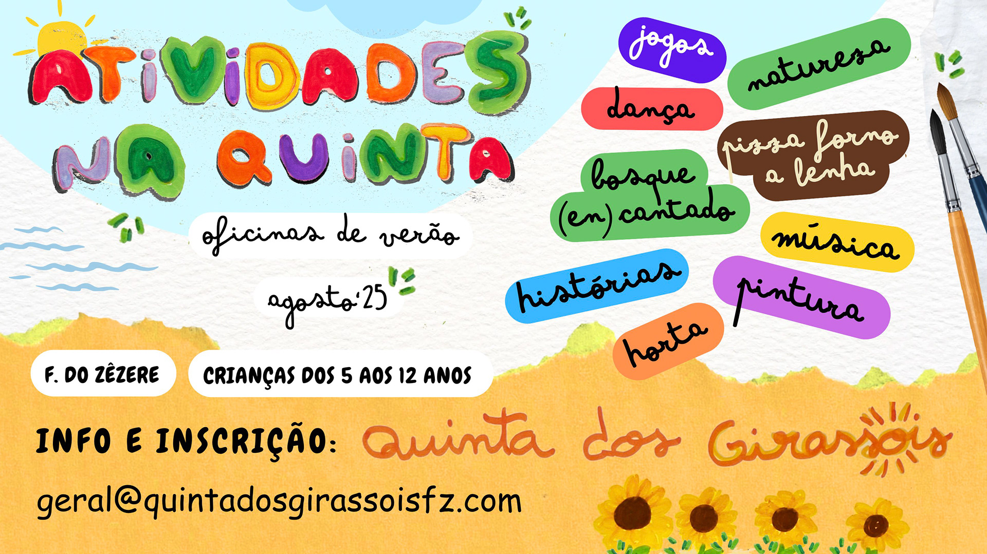 Oficinas de Verão: dança, jogos, natureza, música, pintura, horta, histórias, bosque (en)cantado, pizza no forno a lenha...